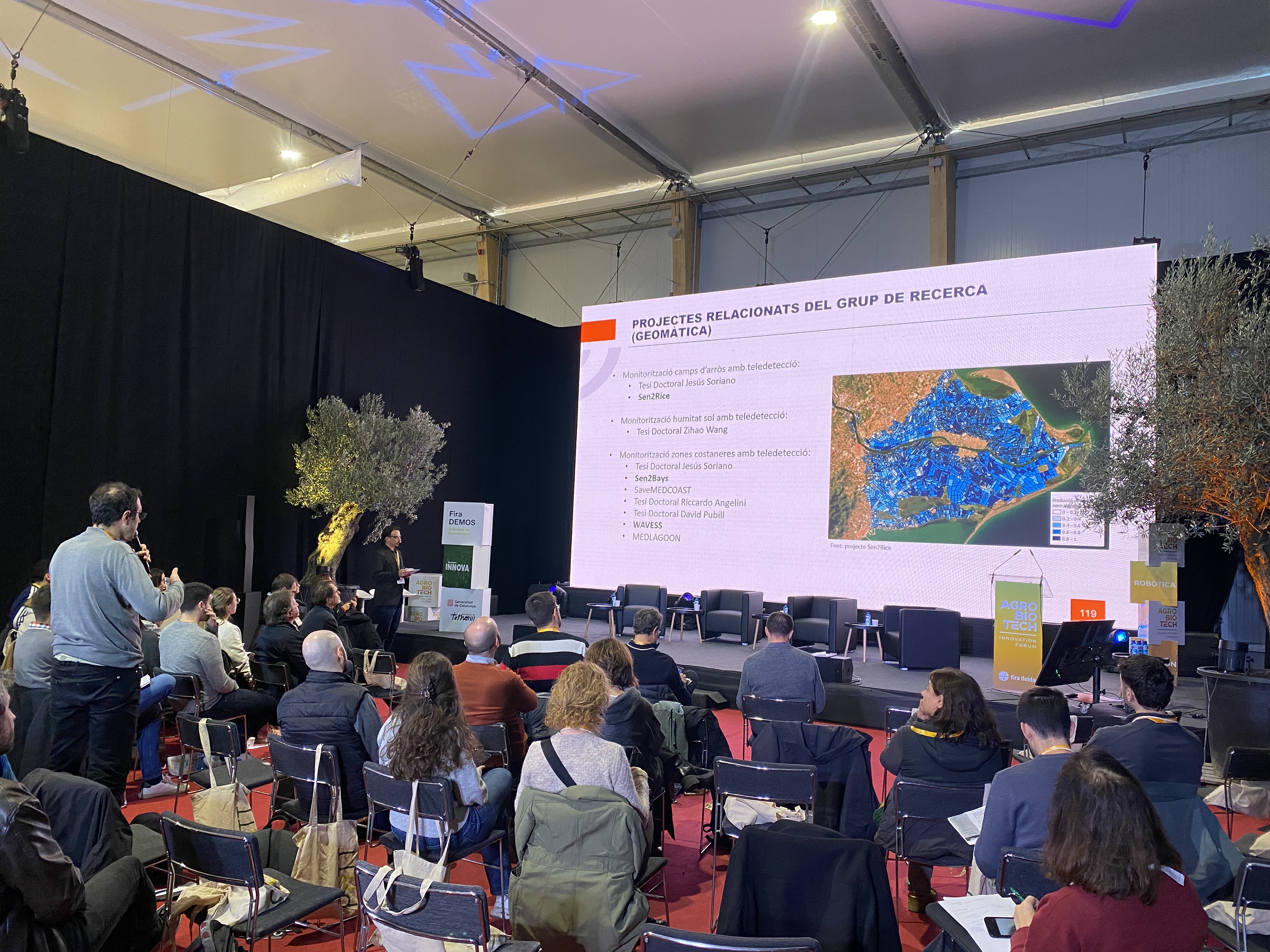 El Centre Tecnològic de Telecomunicacions de Catalunya (CTTC) hi va assistir a través dels investigadors Eduard Angelats i David Pubill, del projecte “Monitoreig del tipus de sembra i estimació de la producció d’arròs al Delta de l’Ebre amb dades Sentinel-2 i tècniques de cloud computing” (Sen2rice).